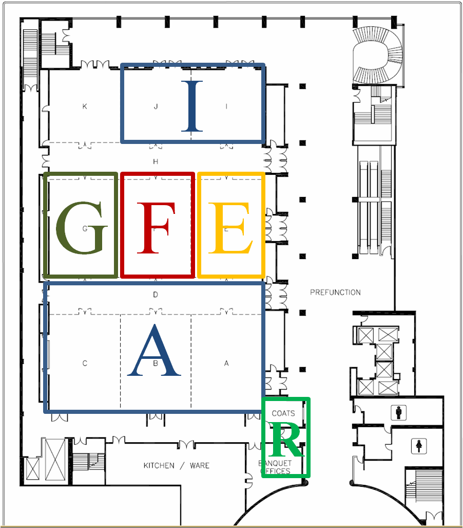 The tracks map to sections of the ballroom as follows: